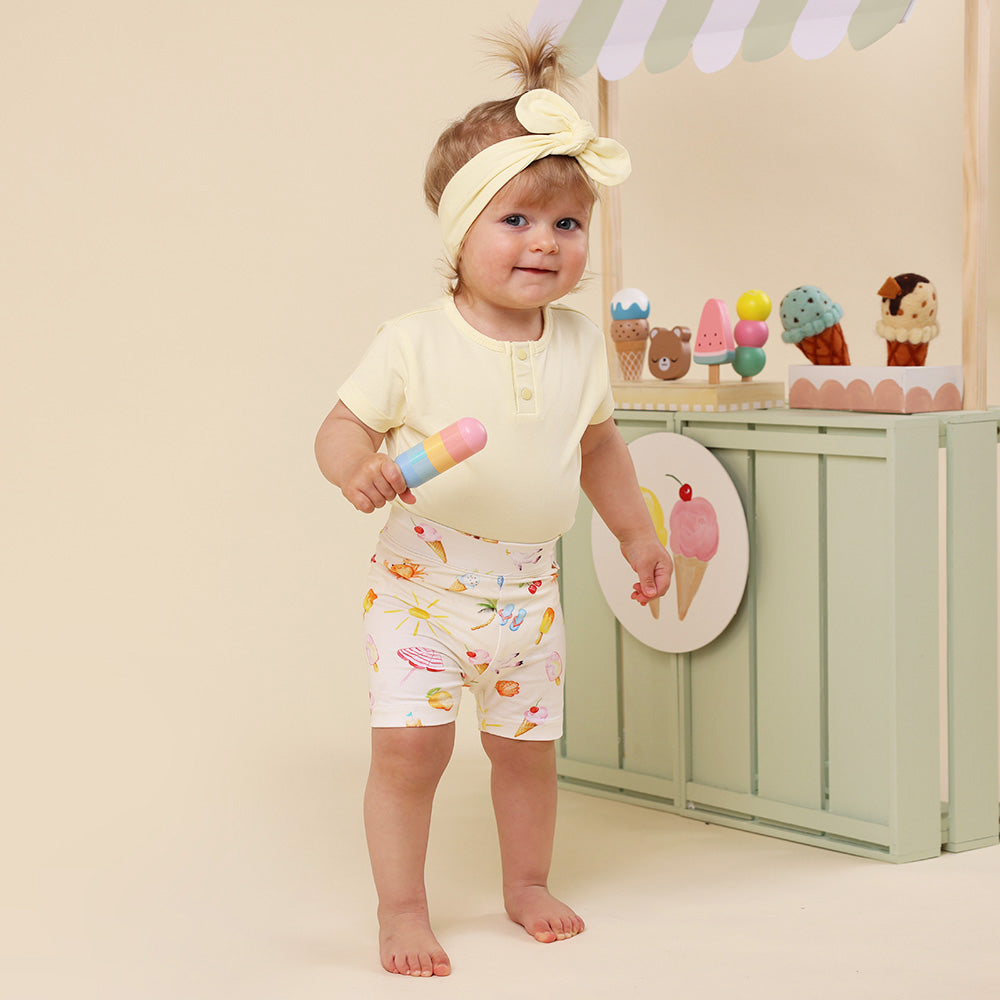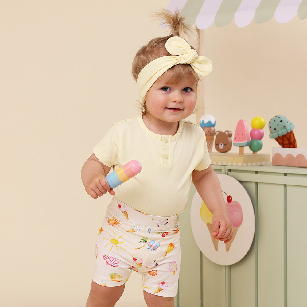 Snuggle Hunny organic Beach Fun bike shorts are made for babies and toddlers. They are practical whilst being very stylish and match beautifully with our fitted bodysuits and T-Shirts.