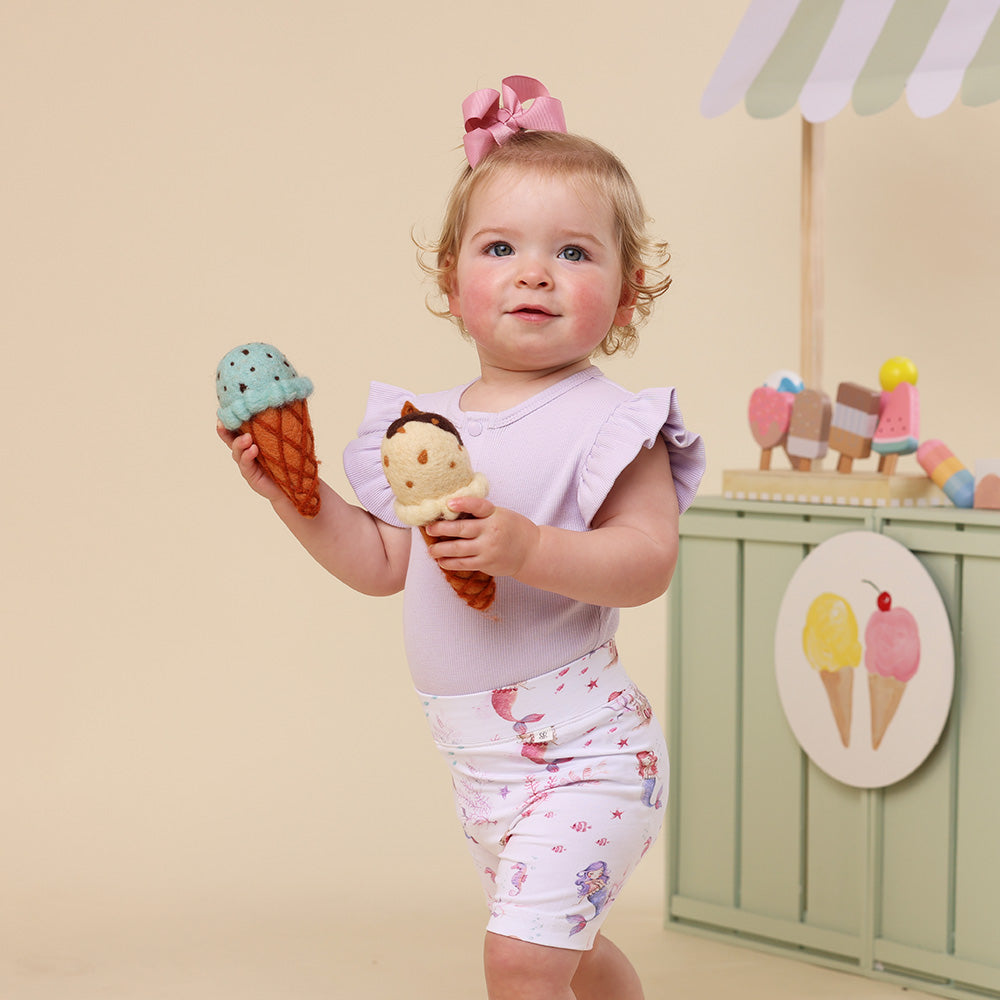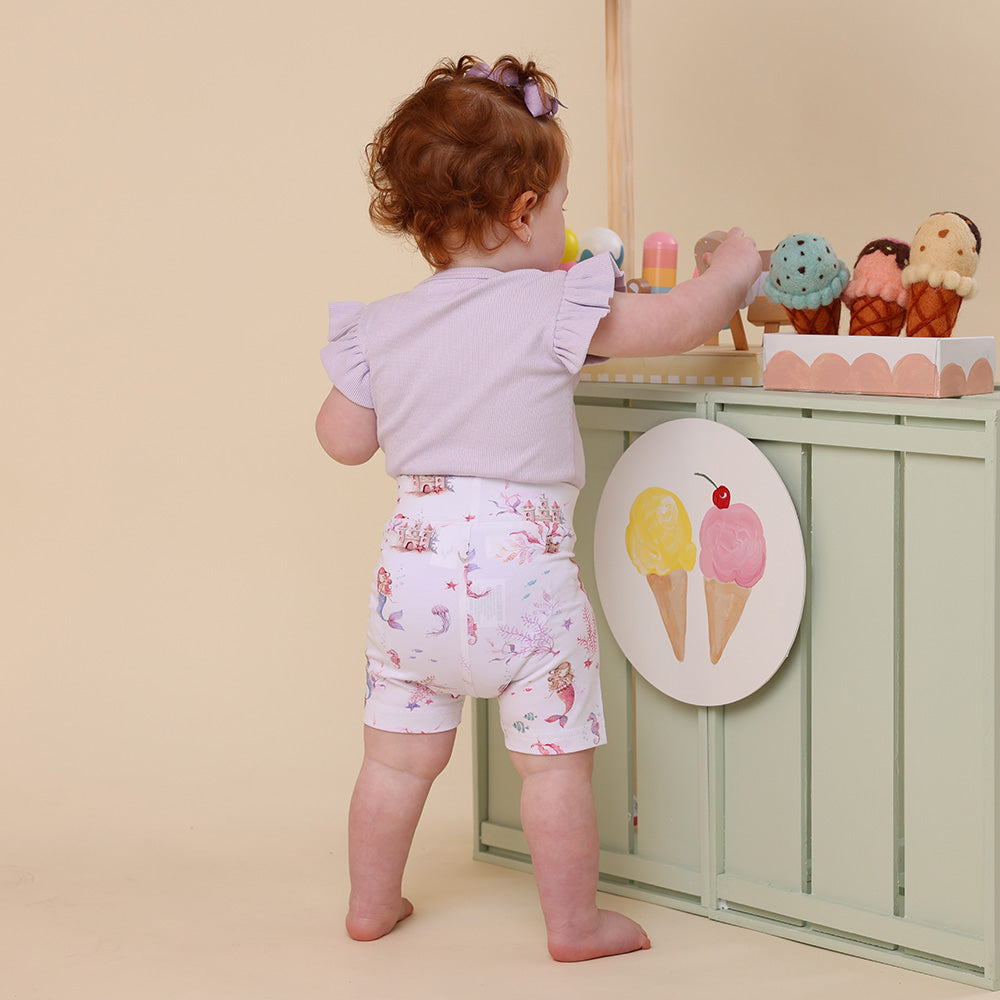 Snuggle Hunny organic Mermaid bike shorts are made for babies and toddlers. They are practical whilst being very stylish and match beautifully with our fitted bodysuits and T-Shirts.
