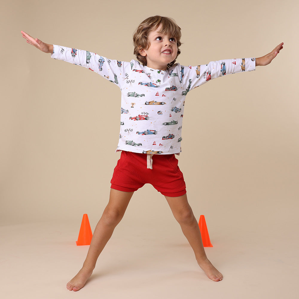 Snuggle Hunny organic red shorts are made for babies and toddlers. They are practical whilst being very stylish and match beautifully with our fitted bodysuits and T-Shirts.