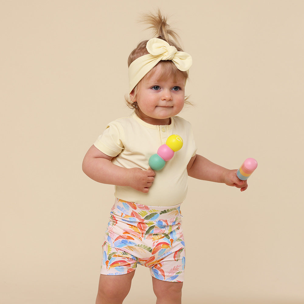 Snuggle Hunny organic Summer Palm bike shorts are made for babies and toddlers. They are practical whilst being very stylish and match beautifully with our fitted bodysuits and T-Shirts.